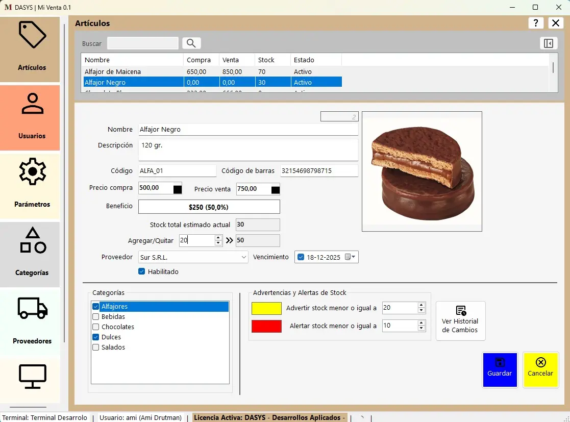 - Pantalla Artículos