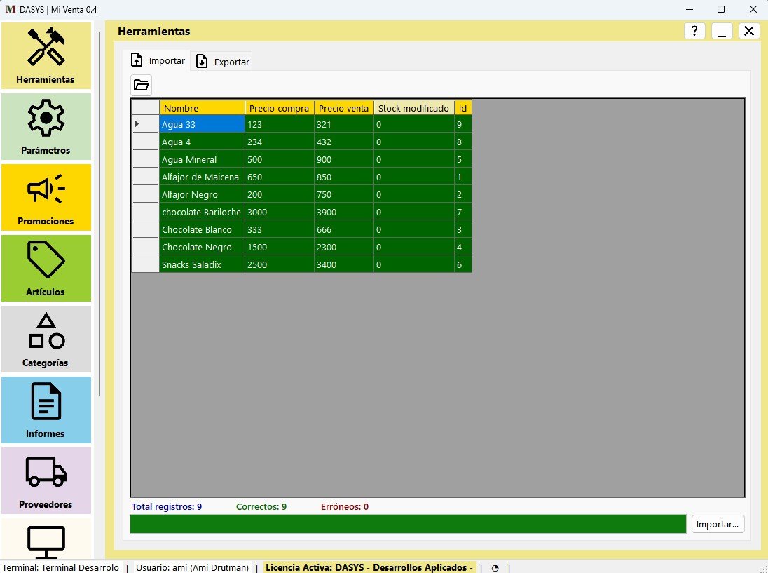 - Importación desde planillas de cálculo (Excel)